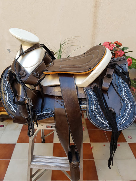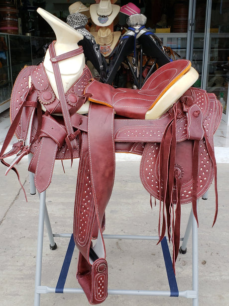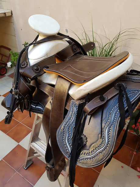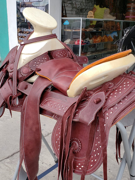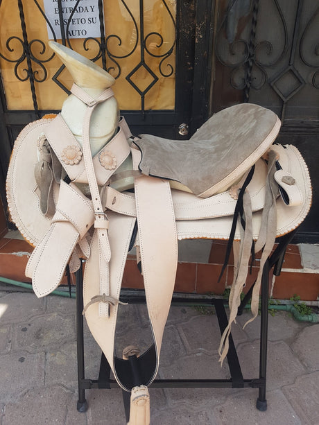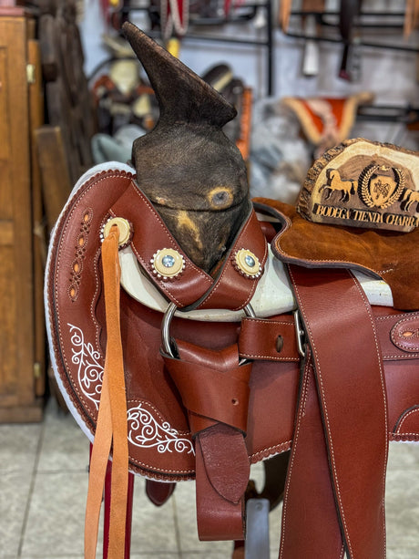 Precio normal $ 8,800.00Precio unitario /AgotadoMontura charra cantina redonda, semilla de melon