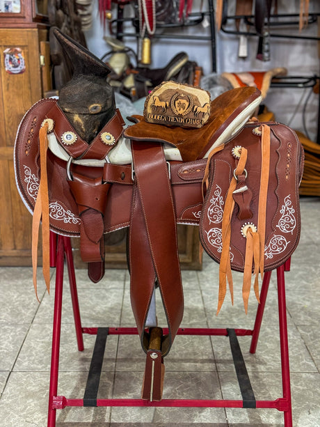 Precio normal $ 5,690.00Precio unitario /AgotadoSilla charra bordada Modelo Aros (con herraje)