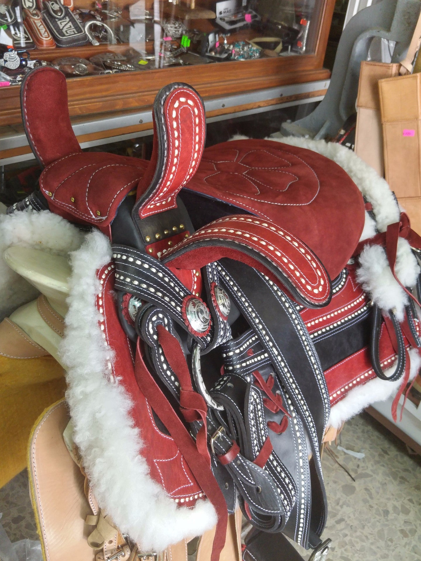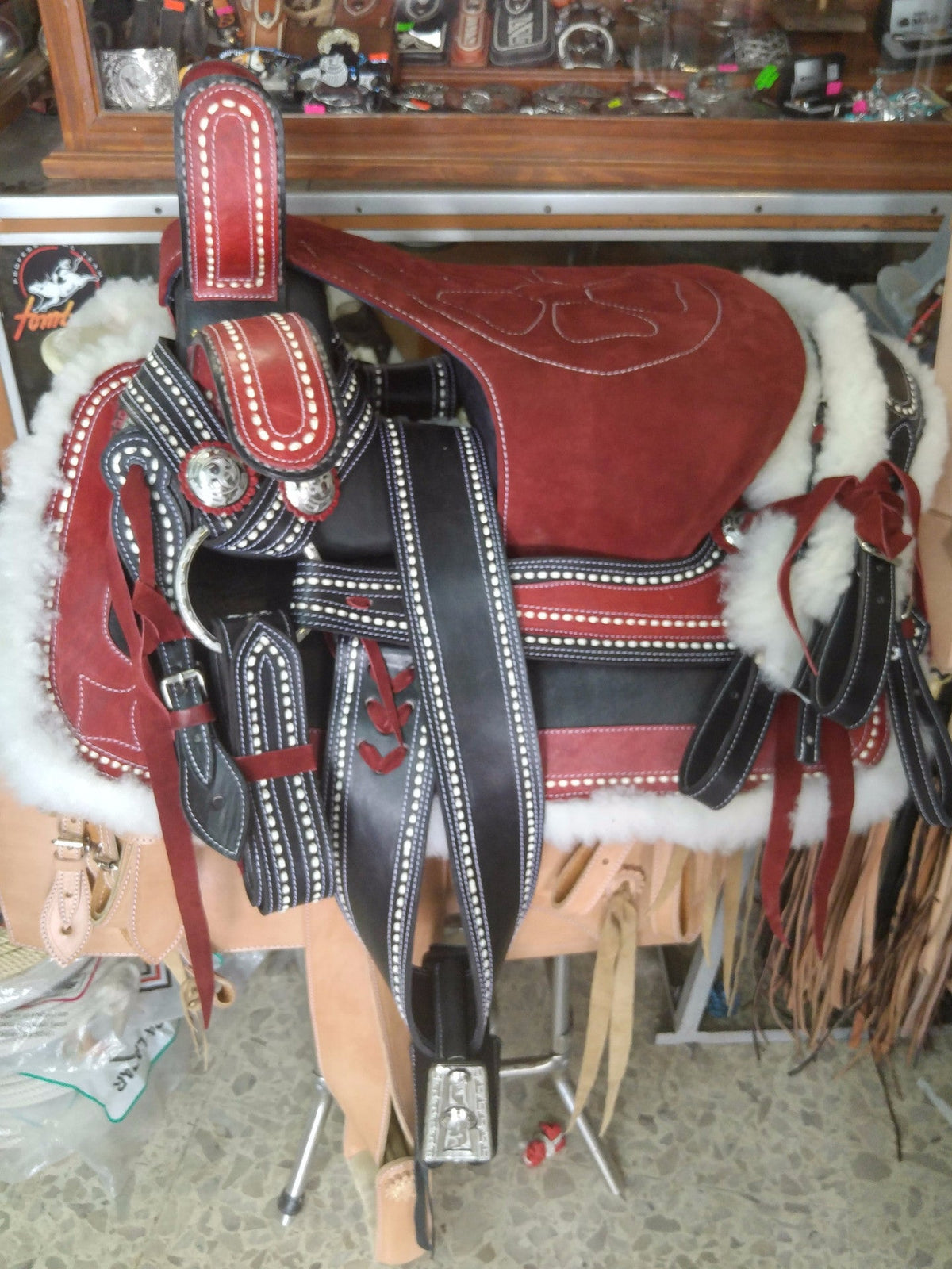 Charra saddlebag with natural sheep lining instead of felt, jaunty leather (dotted), the color can be to taste, this was a special job sent to Guadalajara, any color is made and can be personalized with your name or initials. It has complete stainless steel hardware.