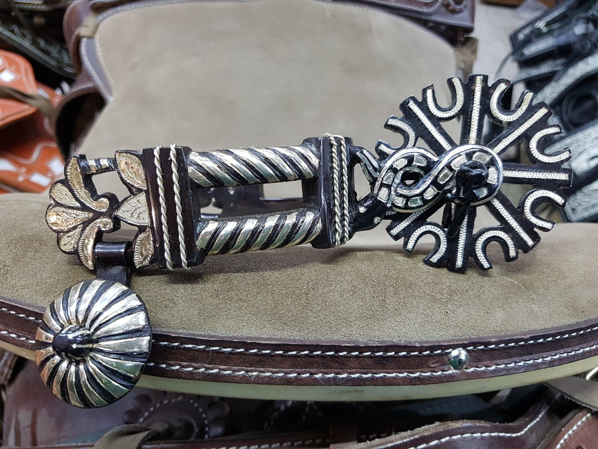 Black pavón charra amozoqueña spur with silver inlays, law 925