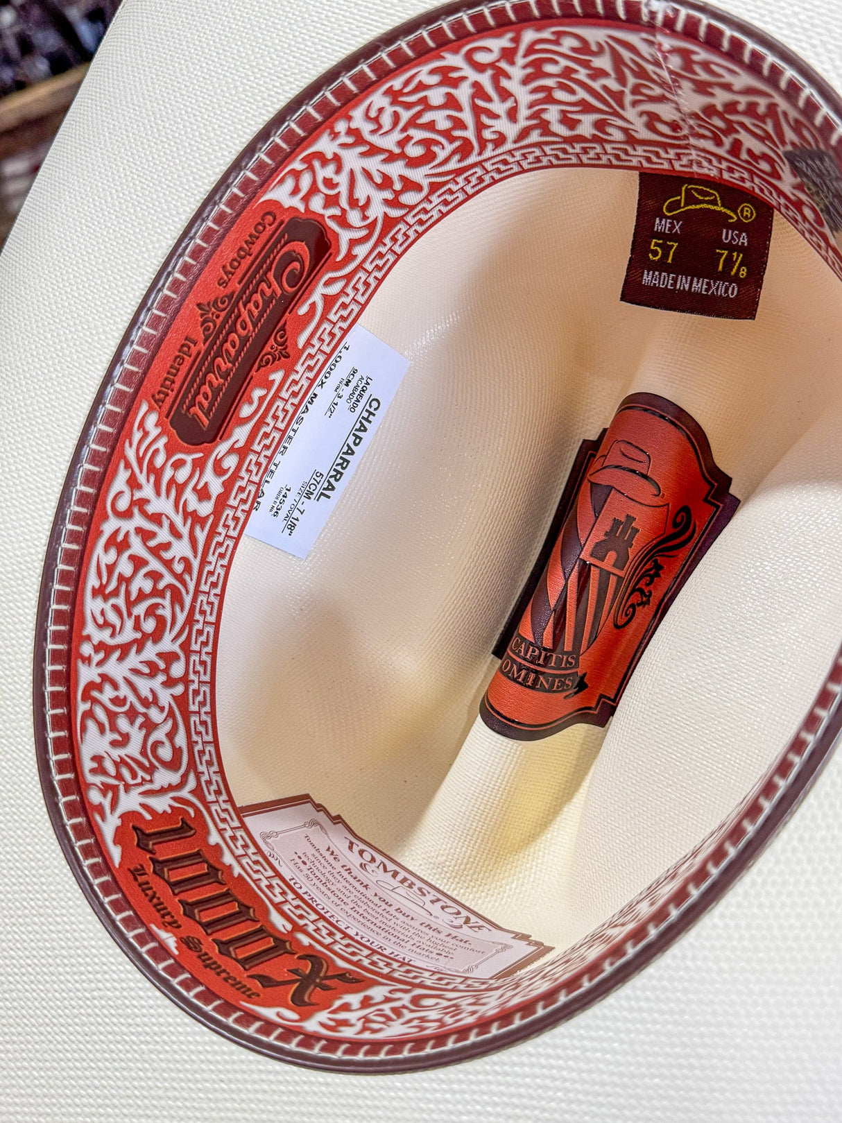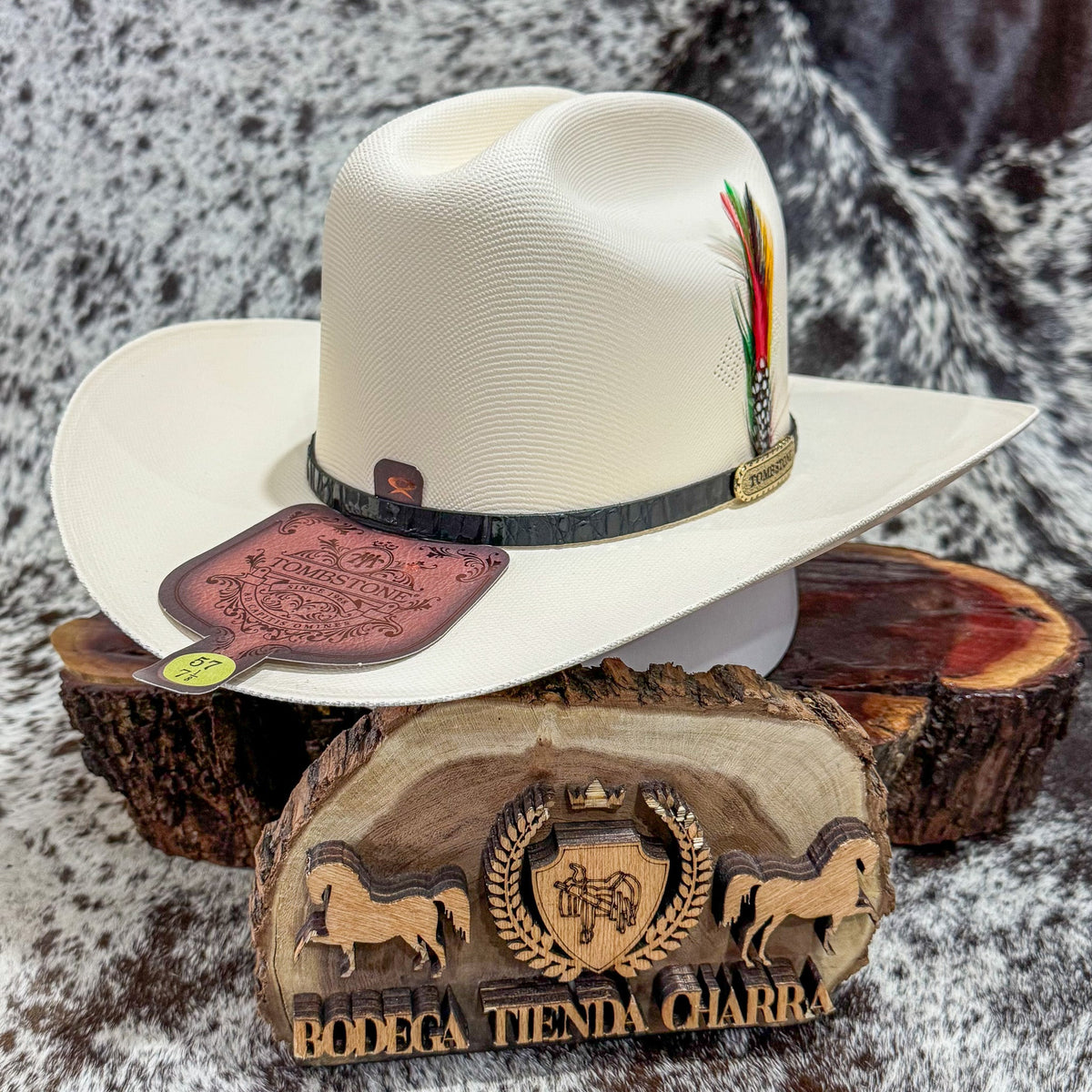 Presentamos el sombrero Chaparral de la marca Tombstone, una pieza exclusiva de calidad 1000X, fabricada en telar master con toquilla y un detalle único: su exótico acabado en cocodrilo negro. Este sombrero no solo resalta por su finura, sino por su estilo inconfundible, inspirado en el auténtico Sinaloa. Su ligereza y comodidad lo hacen perfecto para cualquier ocasión, mientras que su diseño imponente y elegante, con una pluma que le da ese toque distintivo, asegura que quien lo lleve se destaque con porte y sofisticación. Ideal para quienes buscan más que un sombrero: una declaración de estilo.