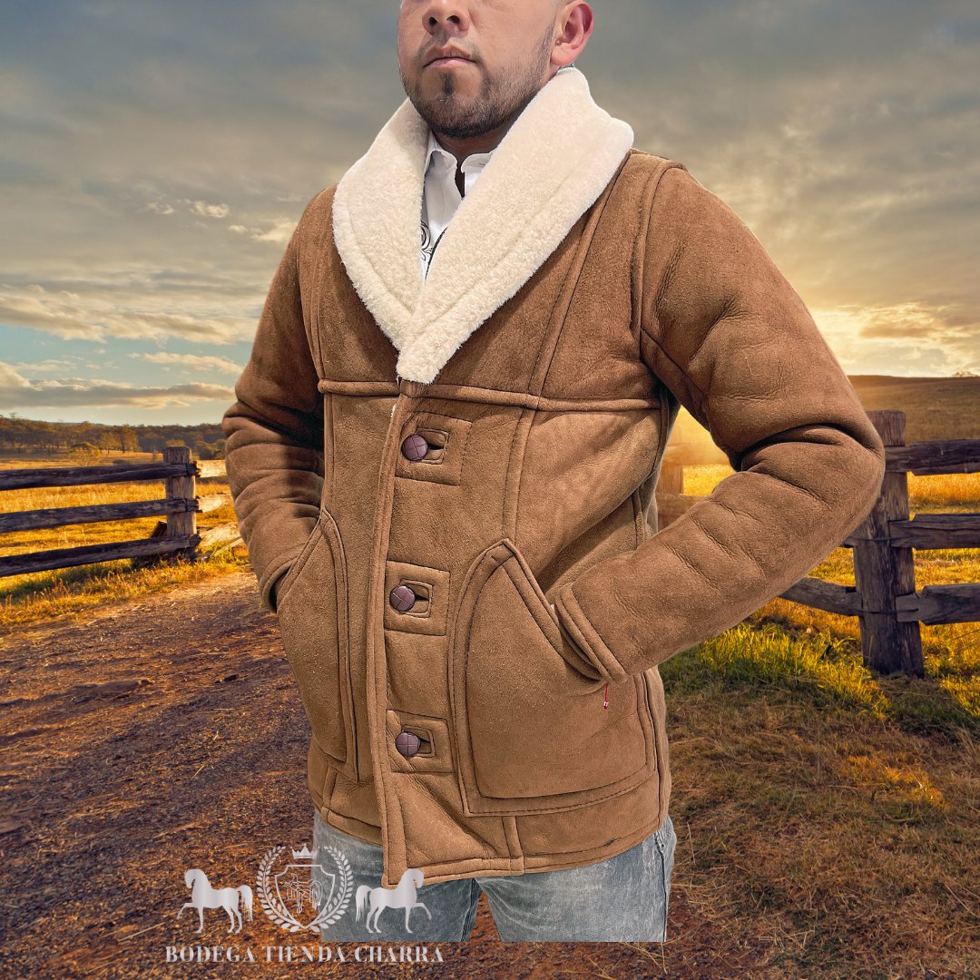 Chamarra Malboro de piel de borrego cazadora (natural)