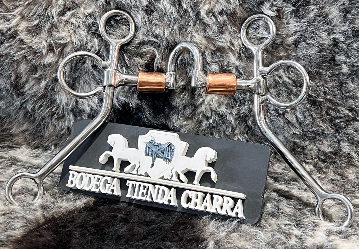 Filete quebrado correccional con barriles de cobre, orejas estilo D y puente alto correctivo.